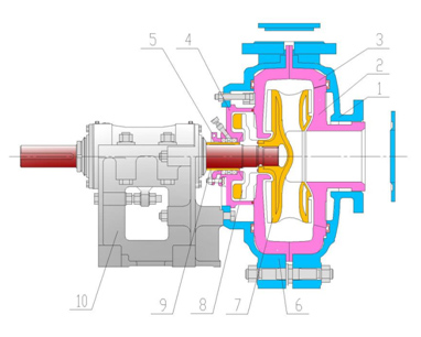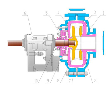 1 Cover Plate 2 Throat Bush 3 Volute Liner 4 Back Liner 5 Expeller Ring 6 Bearing Assembly 7 Frame Plate 8 Impeller 9 Expller 10 Shaft Sleeve |